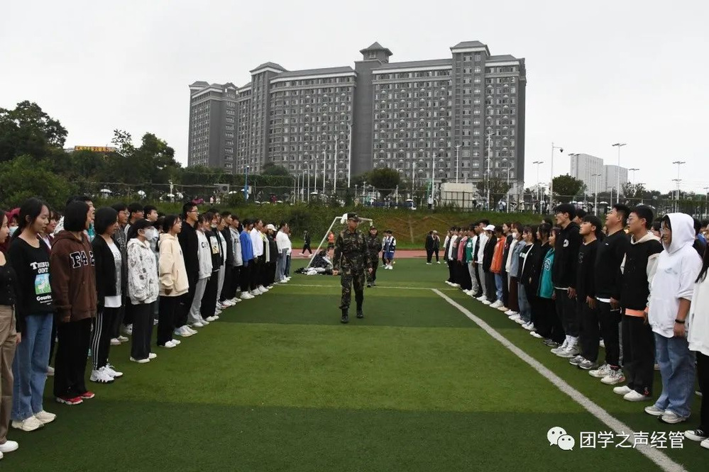 9月13日上午6:50,两院团总支新生整齐地挺立在足球场上,在各干部的组织和各个教官的领导下,以饱满的热情迎接了此次早训。