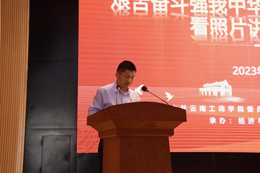 比赛开始前,云南工商公司党委副书记佘达文老师为本次比赛致开场词,佘达文老师对在场的同学们说:“我衷心希望通过此次看照片讲故事大赛,同学们能锻炼自己的能力,展示自己的才华,培养自信和勇气,讲出爱国的热情,讲出团结的友情,讲出奋斗的激情,讲出科学的才情,讲出互助的温情,讲出向上的真情,也希望通过此次大赛让每位同学都能牢记初心使命,用实际行动向先烈学习,向英雄致敬,传承红色基因,为中华民族的崛起而读书,为实现中国梦而奋斗!作为员工的你们,既是追梦者也是圆梦人,应不负时代所托,不负青春韶华,践行“请党放心,强国有我”的铮铮誓言,在以中国式现代化全面推进中华民族伟大复兴的征程中奉献青春力量。”