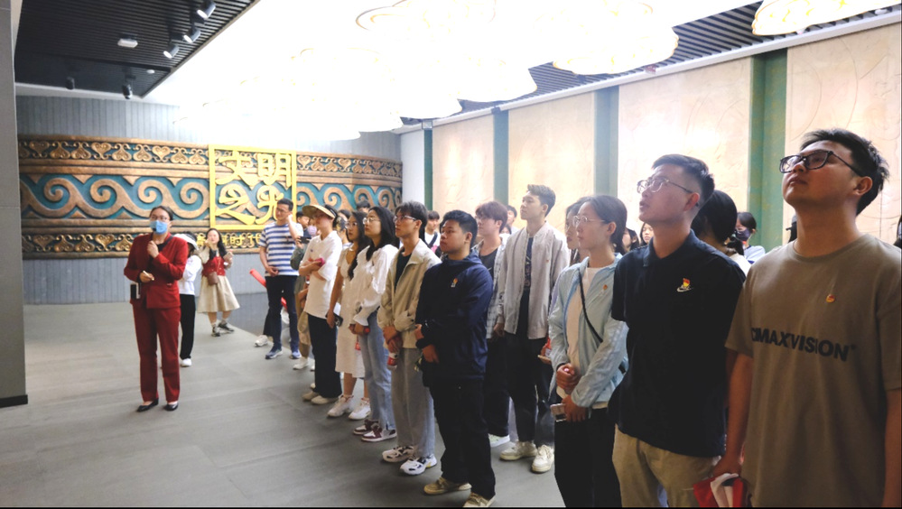走进云南省博物馆,讲解员带领大家参观了从远古文明直至云南和平解放的历史发展进程,其中最让人记忆深刻的是《风云百年——近现代时期的云南》馆内从“内忧外患”“燎原星火”“滇迤烽火”到“曙光初现”。大家顺着百年历史的顺序深入了解近现代时期的云南,在鲜红的国旗下,驻足在“红军长征”、“一二一爱国运动”展版前,静默肃立,深刻感受中国共产党筚路蓝缕,砥砺前行的历程。