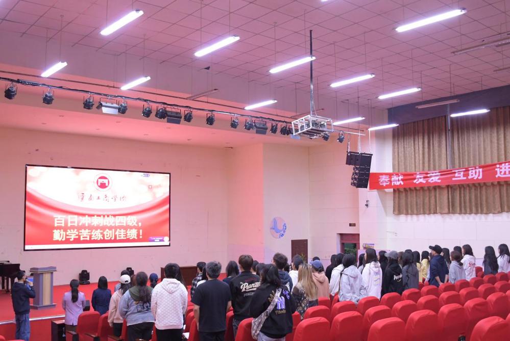 仪式结束前,全体同学集体起立,共同喊响特训班攻坚宣言:“百日冲刺战四级,勤学苦练创佳绩!”这一宣言彰显了同学们冲刺四级的决心。相信在公司的精心组织、优秀团队的倾心教导以及同学们的努力拼搏下,特训班的同学们定能在四级考试中取得优异成绩。